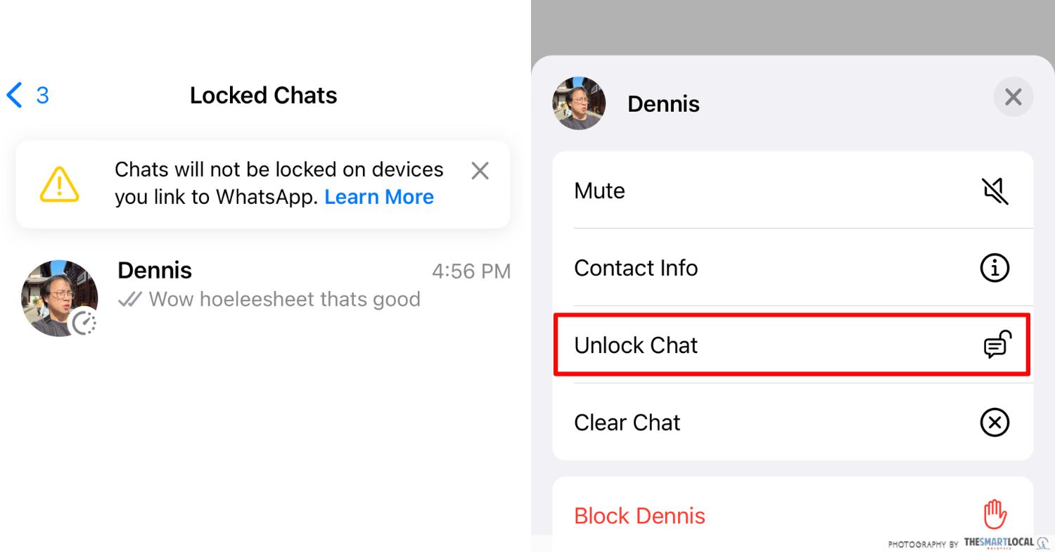4단계: "채팅 잠금 해제"를 선택합니다.