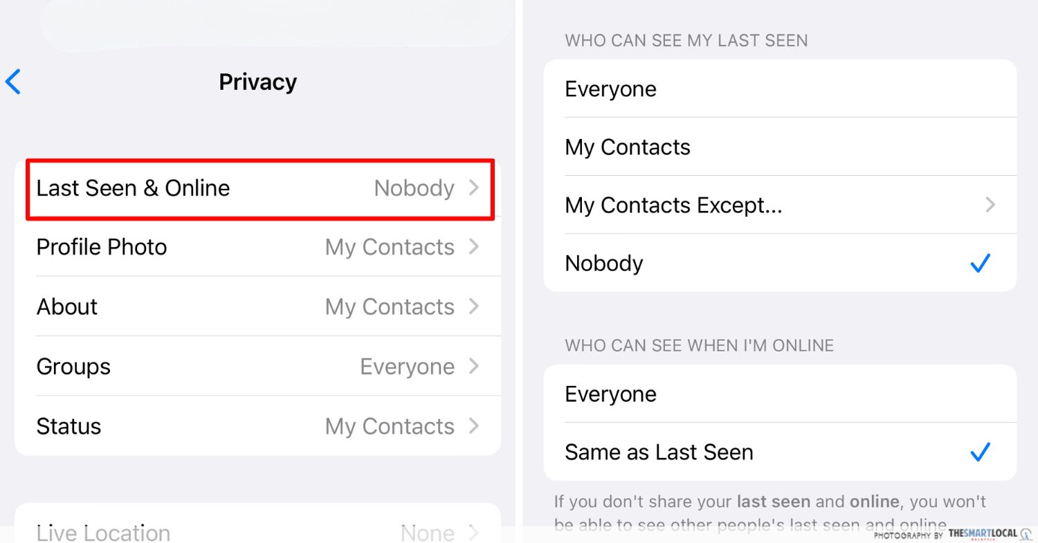 3단계: "마지막 접속 기록 및 온라인"을 선택합니다.