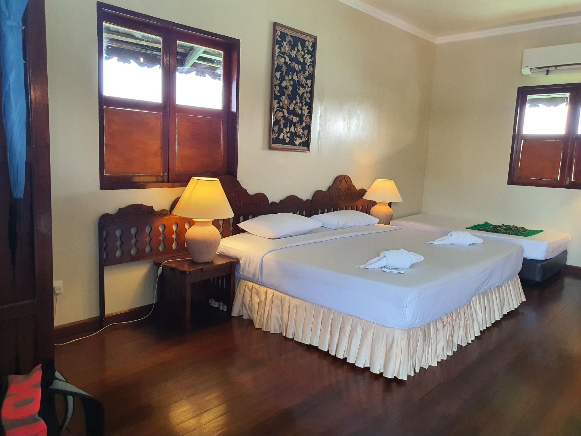 리조트의 45 개의 수상 물 샬레는 전통적인 바자우 건축 양식으로 지어졌으며 주니어 샬레부터 그랜드 디럭스 룸에 이르기까지 다양한 수준의 고급 스러움과 편안함을 제공합니다. 모든 객실에는 전용 선덱,천장 선풍기,미니 바,소파,옷장 및 헤어 드라이어가 있습니다.