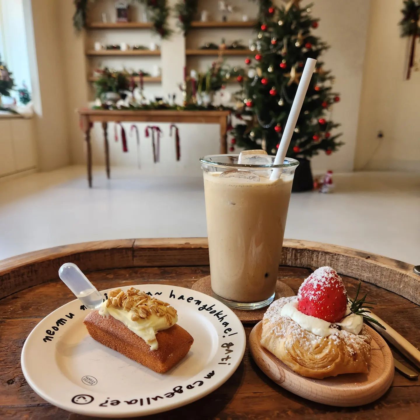 미니멀한 흙빛 톤의 가구로 꾸며진 바닐라 빌리지의 좌석 공간에는 멋진 포토존이 마련되어 있어 사진의 수준을 높여줄 것입니다.