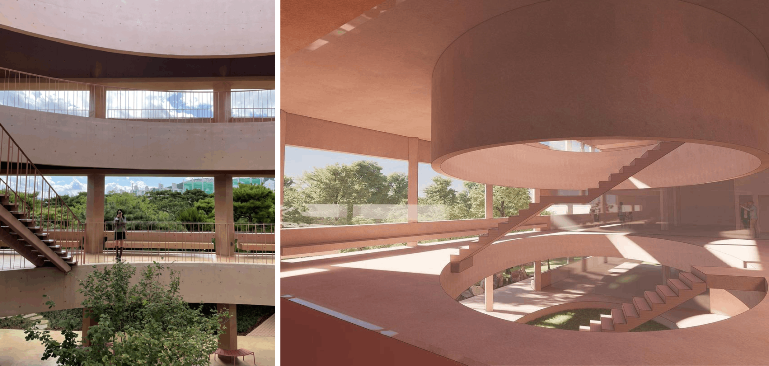 특히 1층에 있는 특이한 모양의 가구가 마음에 드는데, 선명한 색상과 미술관을 연상시키는 기발한 디자인이 인상적이었어요.