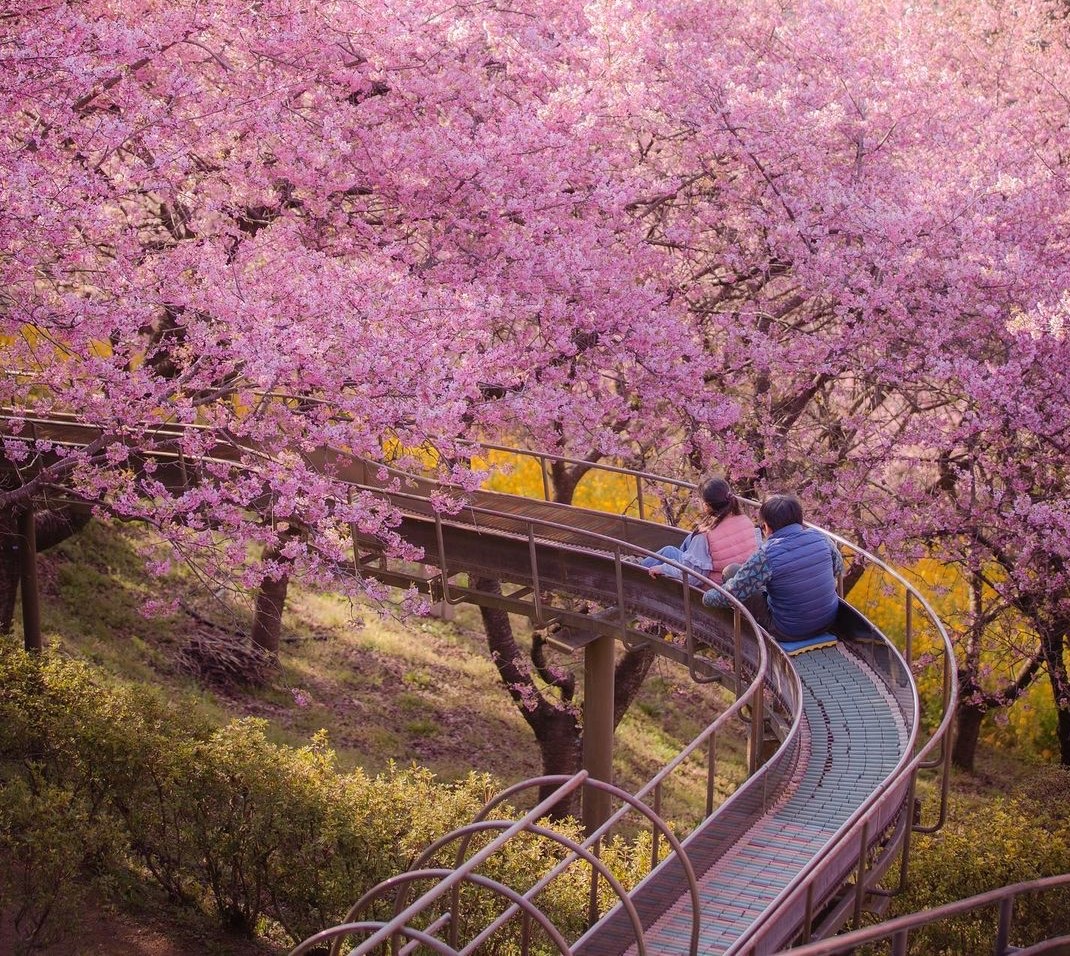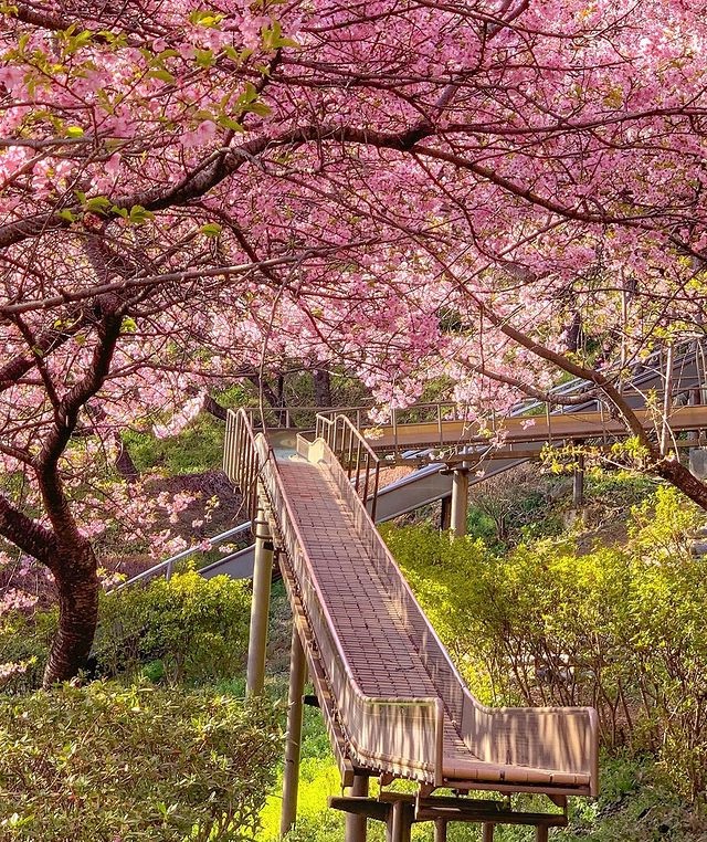마츠다 스카이 스윙과 마찬가지로 니시히라바타케 공원의 선 슬라이드(2000 년)는 틀에 얽매이지 않는 관광을 할 수 있습니다. 니시히라바타케 공원의 방문객들은 벚꽃의 캐노피를 통해 슬라이드할 수 있습니다.