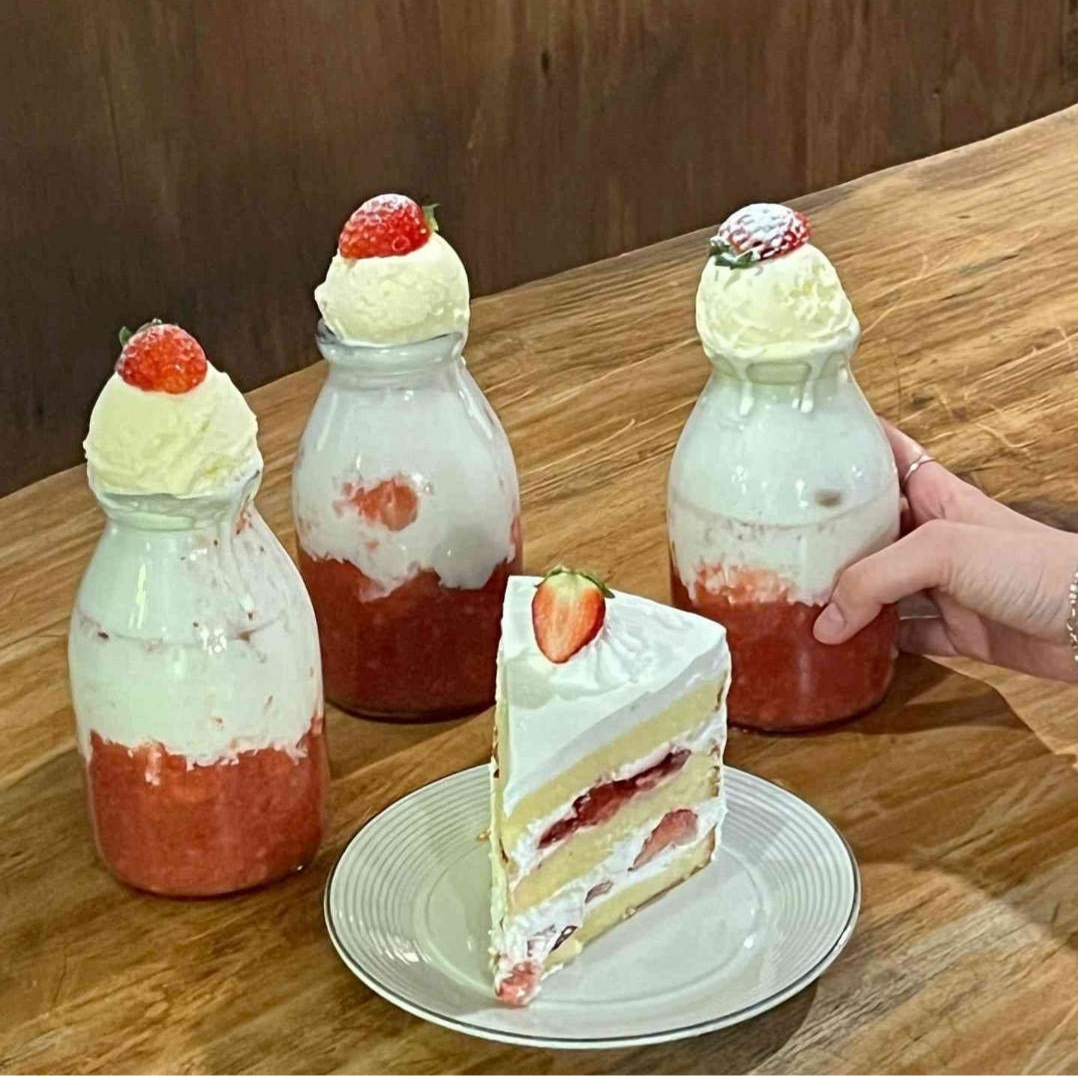 케이크(1조각) 7,000원, 딸기라떼 7,500원, 밀크티스무디 6,500원