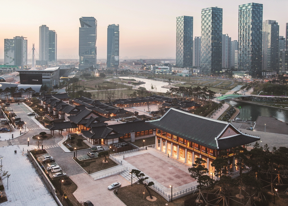 송도중앙공원 주변의 마천루 가운데 전통건축의 아름다움을 보여주는 한옥(전통가옥)마을. 마을에는 레스토랑,카페,호텔이 있습니다. 한옥 스타일의 경원재에서 아름답게 준비된 한국식 테이블 도호테를 맛보고 하룻밤을 보내는 것은 특별한 경험이 될 것입니다. 불고기와 수불갈비(숯불갈비)도 인기 있는 한국 요리입니다.