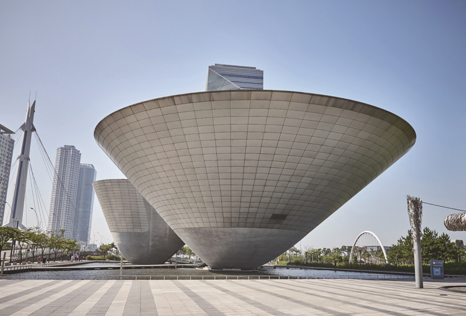 트라이 볼은 세 개의 연결된 구조로 구성되어 있으며,각각은 거대한 거꾸로 된 껍데기처럼 보입니다. 세 그릇은 하늘,바다,땅을 상징한다.또는 인천 자유 경제 구역으로 지정된 송도,영종,청나 지역을 상징한다. 야경이 아름다운 혁신적인 건축물은 공연과 전시가 열리는 다문화 공간을 갖추고 있습니다.
