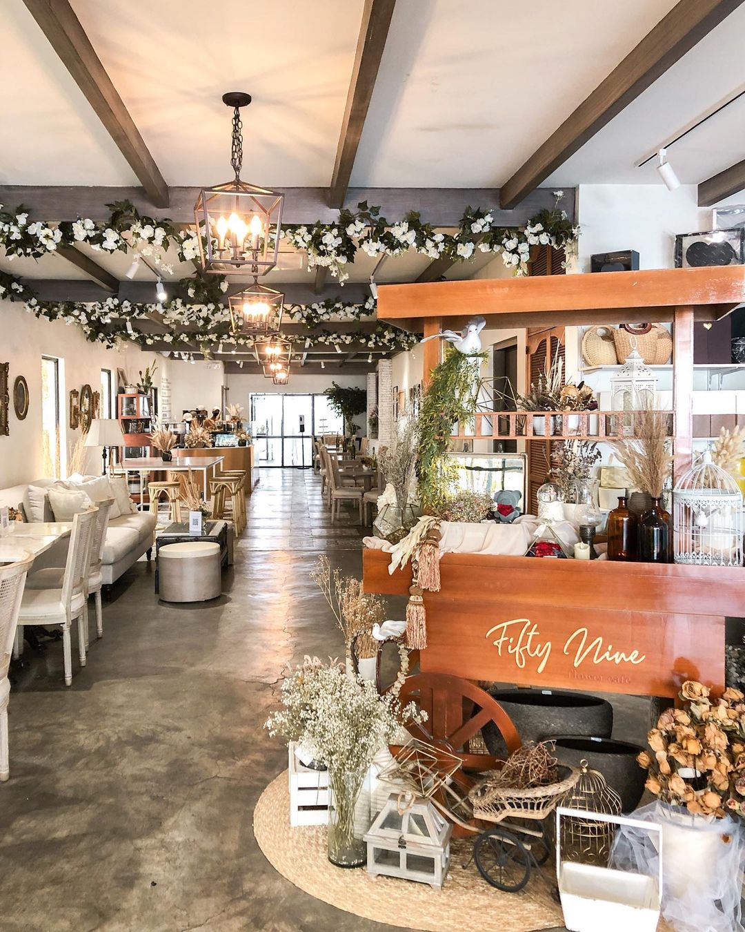 피프티나인 플라워 카페의 꽃집은 매장 앞쪽에 자리잡고 있고 뒤쪽에는 좌석이 넓게 펼쳐져 있습니다.카페 자체에는 은은한 꽃 테마가 있습니다.인테리어가 집처럼 편안해서 부모님 모시고 가시기에 딱 좋아요.