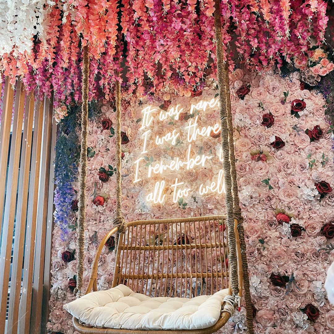 야생화 카페는 모두 너무 잘 나를 가지고! 벽에 가사가 적혀있어서,이 곳은 스위프티 커플들에게 완벽한 데이트 장소입니다. 또한 벽과 천장에는 사실적으로 보이는 꽃이 가득 차 있습니다.