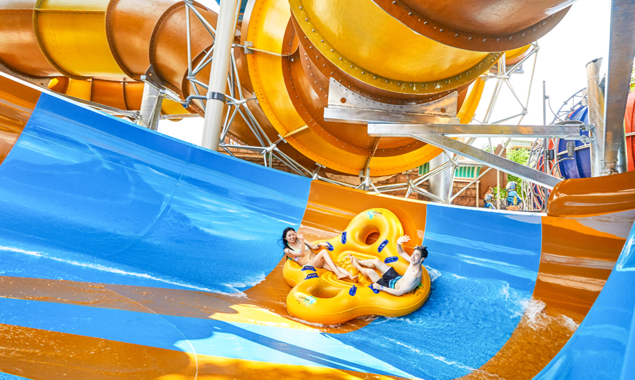 당신과 다른 5 명의 승객은 둥근 플로트에 앉아 직경 6 미터의 넓은 터널 슬라이드를 통해 보내집니다. 또한 공원 전체에서 가장 큰 슬라이드 시설이기도 합니다.