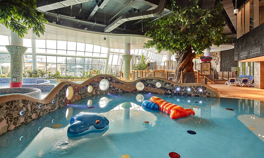 아쿠아 존 은 일 년 내내 운영 되고 있으며,모든 연령 의 가족 과 사람 들 을 위한 물놀이 시설 이다.