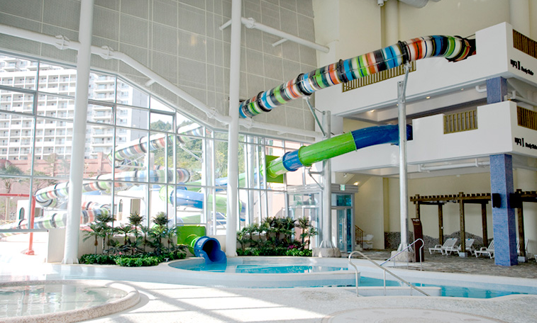 한화 설악 워터피아는 설악산과 동해를 조망할 수 있는 온천 물놀이공원이다.
