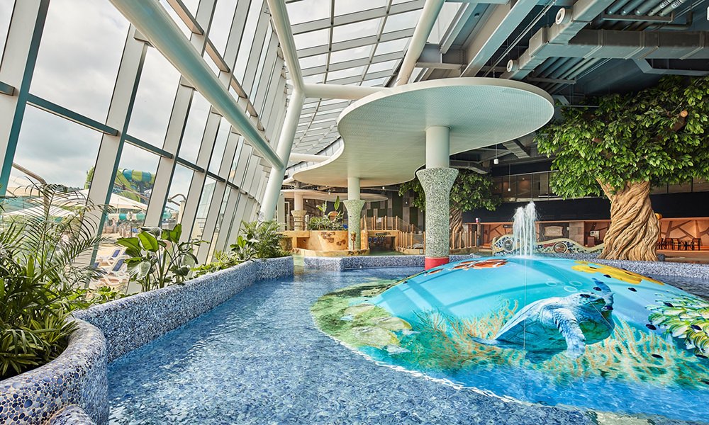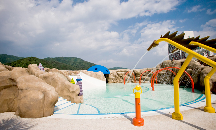 공원 내 스파동 구역에서는 어린 아이들이 물총과 슬라이드를 갖춘 물놀이장인 아쿠아 플레이 시스템에서 놀 수 있다.