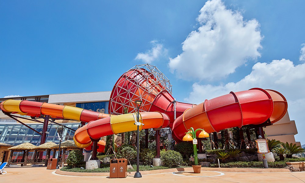 야외 구역에는 3 개의 고속 승차가 있습니다.가족 슬라이드,업&힐 슬라이드,스피드 슬라이드.