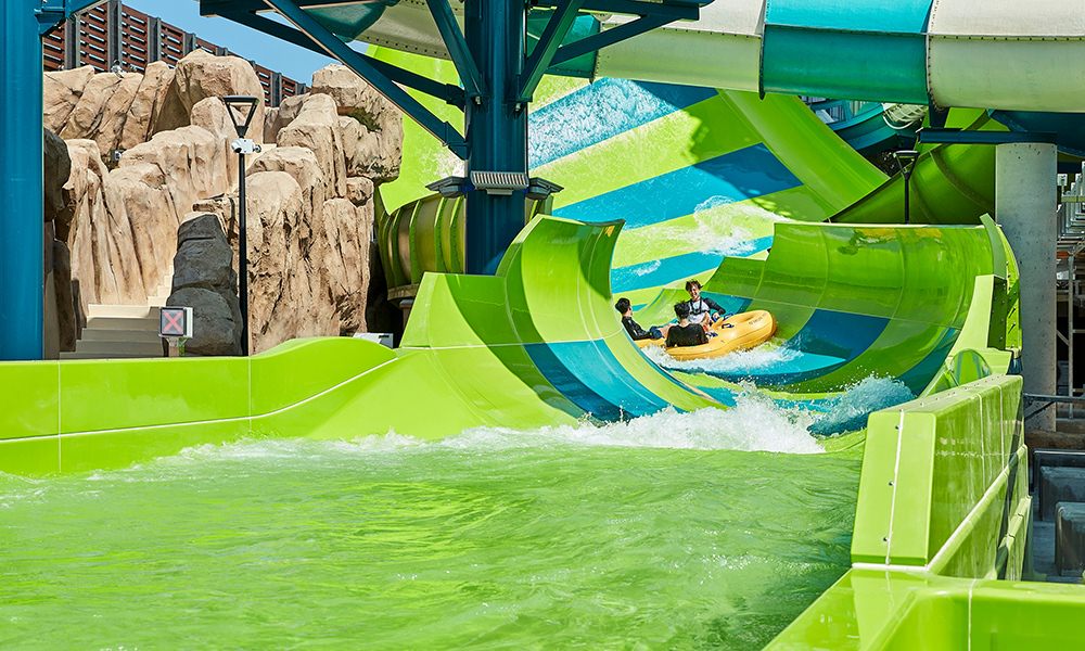 가족 슬라이드는 한국에서 가장 길고 넓은 슬라이드로 선포되었으며,한 번에 4 명의 라이더를 수용할 수 있습니다.