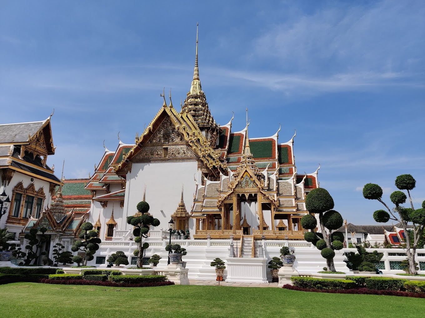 그랜드 팰리스와 와트 프라카우는 신성한 땅을 걸어온 모든 사람들에게 존경심을 불러일으킨다. 1782 년 에 지어진 그랜드 팰리스 는 150 년 동안 태국 왕 들 과 왕실 의 집 으로 사용 되었으며,아름다운 건축물 과 복잡 한 세부 사항 으로 인해 방문객 들 이 계속 경외 를 받고 있습니다. 와트 프라 카우 는 프라 카우 모라코트(스메랄드 부처)를 안치 하고 있으며,한 조각 의 에메랄드 로 꼼꼼 하게 조각 된 신성한 부처 의 형상 이다.