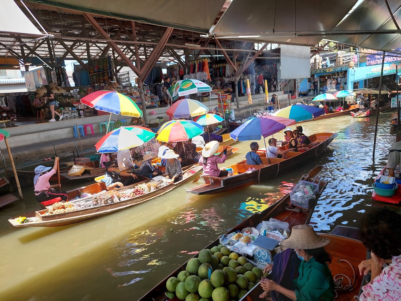 방콕 부동 시장의 선구자,담노엔 사두악은 점점 더 관광적인 분위기에도 불구하고 진정한 경험을 계속 제공합니다. 에 의해 떠있는 나무 행 보트 수십 상상,농장 신선한 과일,야채 나 꽃 가장자리에 각각의 라덴. 음식 판매자 들 은 그릇 에 가마솥 과 목탄 그릴 을 채우고,요청 시'보트 누들'이나 해산물 스피어 한 그릇 을 준비 한다. 시장은 방콕에서 남서쪽으로 약 100 킬로미터 떨어져 있습니다.