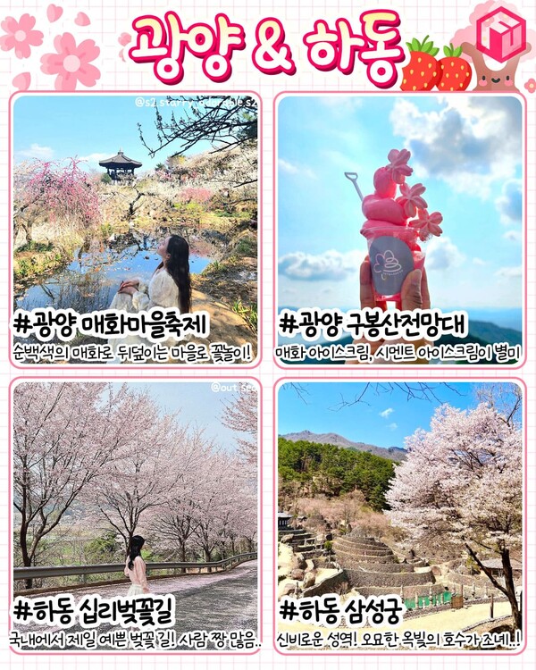 ✅ 광양 매화마을축제 ✅ 광양 구봉산 전망대 ✅ 하동 십리벚꽃길 ✅ 하동 삼성궁