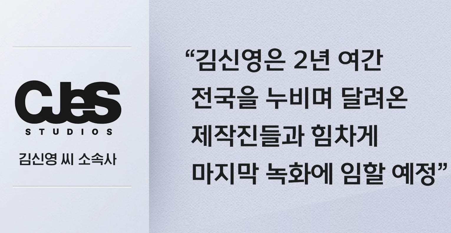 소속사 측은 오는 9일 인천 서구 편이 김신영의 마지막 녹화라 김신영은 2년여간 전국을 누비며 달려온 제작진들과 힘차게 마지막 녹화에 임할 예정이라고 밝혔습니다. 김씨는 34년 동안 진행을 맡아온 고송씨의 뒤를 이어 MC를 맡아 크게 주목을 받았지만, 지난 2022년 9월 이후 1년 6개월여만에 갑작스레 하차하게 됐습니다.