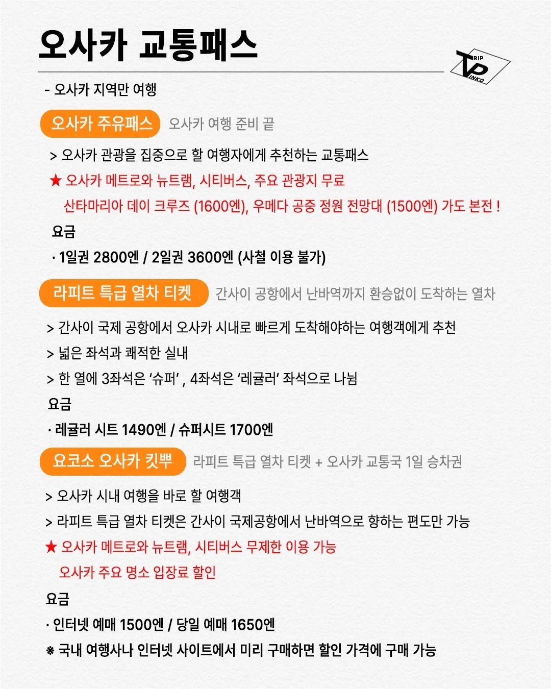 > 오사카 관광을 집중으로 할 여행자에게 추천하는 교통패스.