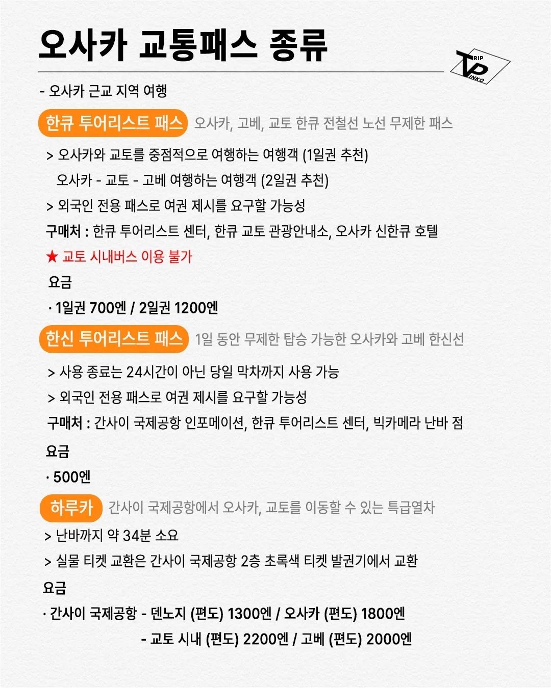 > 간사이 전체 지하철, 전철, 버스 자유롭게 이동 가능.