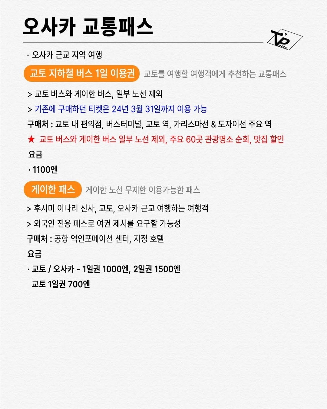 ·교토 / 오사카 - 1일권 1000엔, 2일권 1500엔.