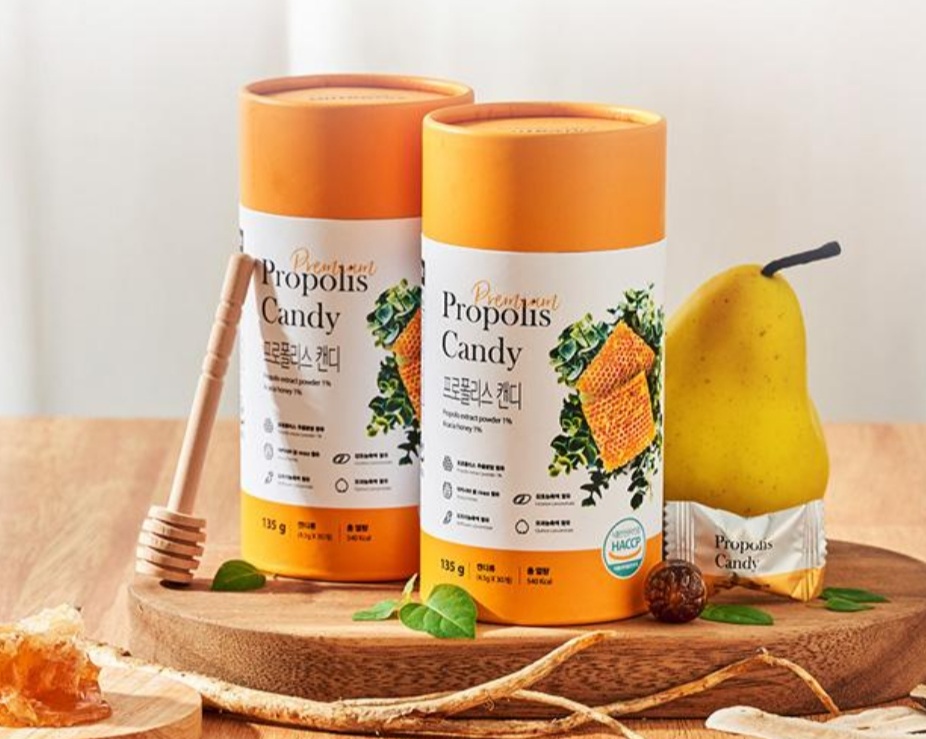 프로폴리스는 꿀벌이 나무의 싹이나 수액과 같은 식 물로부터 수집하는 수지질의 혼합물이다. 프로폴리 스 추출물에는 항산화 작용과 항균, 항염과 같은 효 과가 있다. 또한 면역력을 강화시켜 암을 예방할 수 있으며, 강심 작용과 간을 보호해 당뇨에도 효과를 보일 수 있다. 프로폴리스 추출물을 활용한 다양한 식품 중에는 기침에 효능을 보이는 캔디류가 있다. 지금부터는 목감기에 좋은 프로폴리스 캔디 제품을 모아서 추천하고자 한다.
