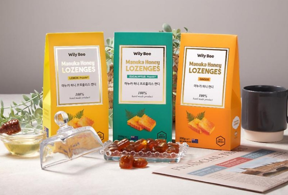 윌리비 프로폴리스 캔디는 '마누카 허니 프로폴리스 유칼립투스'와 '마누카 허니 프로폴리스 레몬'의 두 가지 맛을 고를 수 있는 제품이다. 프로폴리스 유칼 립투스는 입에 넣는 순간 화한 느낌이 감도는 캔디 로, 막힌 코를 뚫고 목을 개운하게 만들 수 있을 정도 로 강도가 강한 제품이다. 프로폴리스 레몬은 달콤 하면서도 상큼한 맛을 가진 제품으로, 은은한 꽃향 과 달달함을 느낄 수 있다. 200g 패키지의 공식몰 판매가는 17,000원이다.