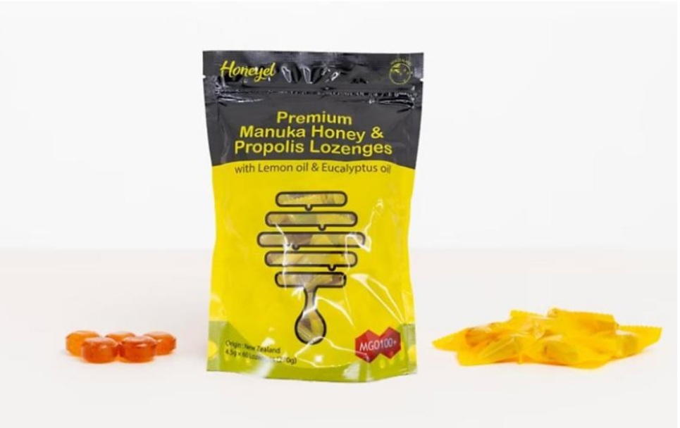 허니엘 프로폴리스 로젠지는 먹기 간편하도록 캔디 형태로 만든 식품이다. 뉴질랜드산 마누카 꿀을 1 0% 함유하고 있으며, 역시 뉴질랜드산인 프로폴리 스를 넣었다. 캔디의 맛을 더하기 위해 천연 향료인 레몬 오일, 유칼립투스 오일도 넣었다. 영유아, 임산 부, 혹은 꿀이나 꿀벌에 알레르기가 있는 이들에게 는 권장하지 않는 제품이다. 270g 용량 제품의 대 형마트 기준 판매가는 19,550원이다.