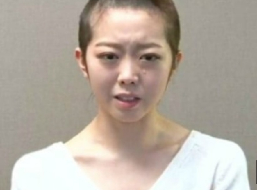 미네기시가 삭발한 모습으로 등장한 사과 영상이 AKB48 공식 페이지에 게재되자 열도는 충격에 빠 졌다.