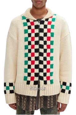 Andersonbell 앤더슨벨 체커보드 니트 집업 전면의 체커보드 패턴 디자인의 니트 집업 입니다.
