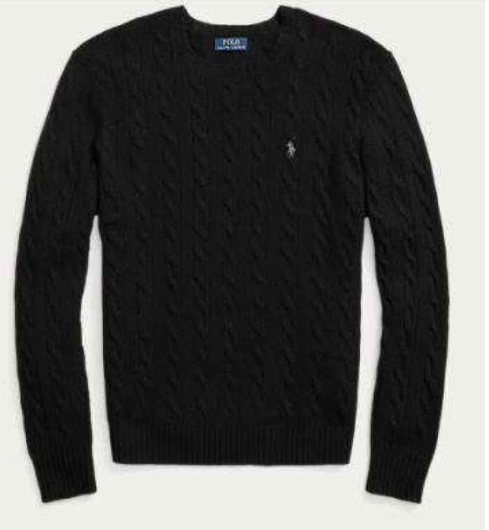 케이블니트 짜임의 크루넥 폴로랄프로렌 캐시미어 니트 스웨터 블랙컬러에 블랙 포니 자수가 더욱 멋스러운 제니패션입니다.