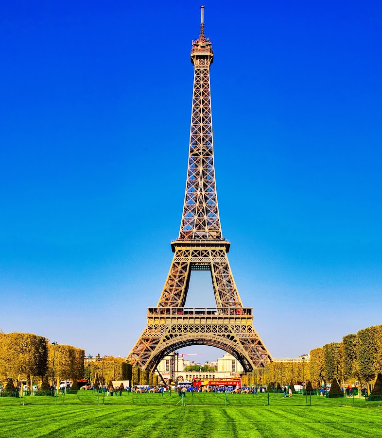 프랑스어로 여성스러운 탑이라는 뜻의 에펠탑은 파리에 오면 꼭 봐야 할 명소입니다. 높이 324미터, 3층, 674개의 계단으로 이루어진 이 타워는 눈에 띄지 않을 수 없죠. 2층에는 미슐랭 스타 레스토랑과 프랑스식 마카롱 바가, 3층에는 샴페인 바가 있습니다. 에펠탑은 세계적인 명성 때문에 항상 붐비기 때문에 리프트로 정상에 오르려면 미리 온라인으로 티켓을 예약해야 해요. 에펠탑 광장 주변을 배회하는 사기꾼을 조심하세요.