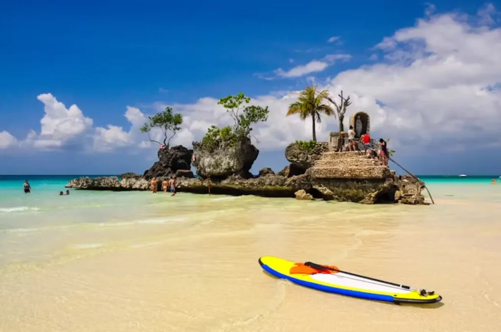 화이트 비치의 흥미로운 화산 지형인 윌리스 록은 보라카이에서 가장 잘 알려진 랜드마크 중 하나입니다. 바위 꼭대기에는 성모 마리아 동상도 있습니다.