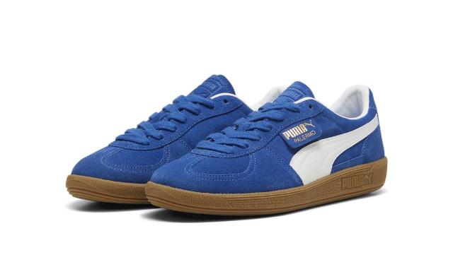 푸마의 팔레르모'는 1980년대 초반 축구 경기장에 서 첫선을 보인 클래식 스니커즈다. 우수한 내구성의 스웨이드 소재로 어퍼가 제작됐으며, 옆면에는 폼 스 트라이프와 푸마, 팔레르모 금박 로고가 배치돼 있다.