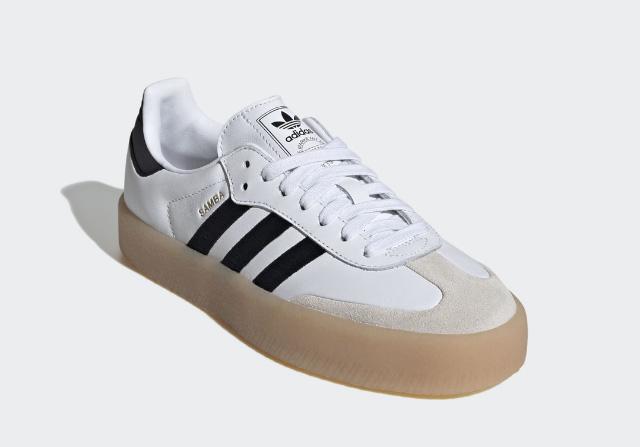 '삼배 W'만큼 매력적인 아이템은 또 없을 것이다. 아 디다스 삼바의 아이코닉 스타일을 재해석한 제품으 로, 부드럽고 유연한 착화감을 선사하는 캥거루 가죽 소재의 어퍼를 갖추고 있다. 외부 스티치가 보이지 않 도록 토 캡은 깔끔하게 마감했으며, 상징적인 3 스트 라이프 자수와 금색 삼바 로고로 포인트를 줬다. 본 제품의 판매가는 139,000원이다.
