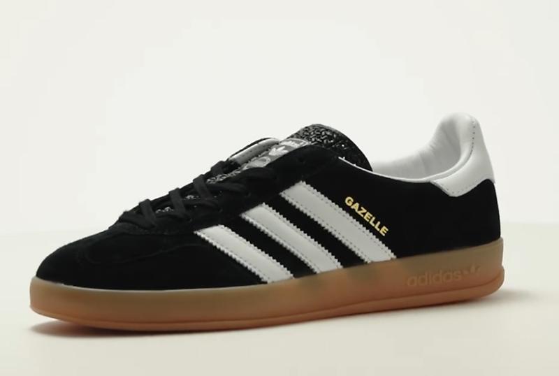 아디다스 가젤 인도어 블랙 색상은 어떤 패션에도 부 담 없이 신을 수 있는 스니커즈다. 가절 인도어 트레 이닝화는 1979년 출시된 라인으로, 본 제품은 최초 의 제품을 현대적으로 재해석했다. 튼튼한 내구성의 천연 가죽 소재 어퍼, 볼록한 엠보싱 디테일이 돋보이 는 설포 디자인을 갖췄다. 옆의 3 스트라이프에는 톱 니 형태의 디자인으로 포인트를 줬다. 아디다스 가젤 인도어의 판매가는 159,000원이다.