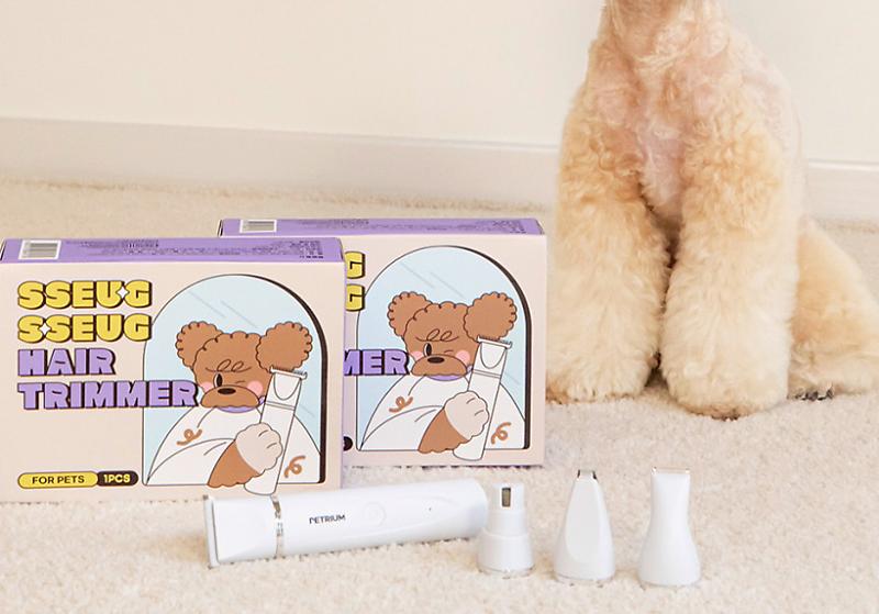 펫트리움의 쓱쓱이발기'는 절삭력이 좋고 반려견에 게 안전한 이발기다. 다양하게 사용할 수 있는 네 종 류의 헤드를 본품과 함께 제공한다. 스테인리스 하단 날과 세라믹 상단날의 안전한 구조를 채택했으며, 반 려견 피부의 자극 걱정을 덜 수 있다. 최소화된 소음 과 진동으로 반려견이 불안함을 느끼지 않도록 제작 됐다. 자체 배터리를 탑재하고 있으며, 완충 시 최장