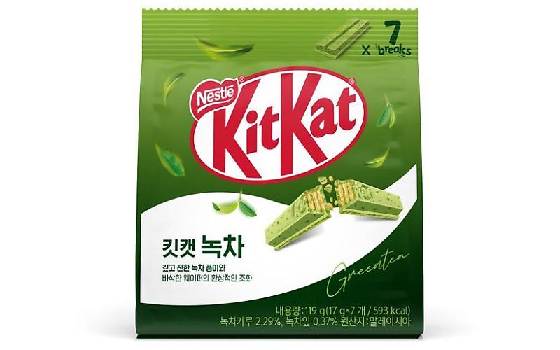 네슬레코리아는 킷캣 프리미엄 라인에 대한 소비자들 의 지속적인 관심과 수요에 힘입어 7개입 소용량 파 우치로 구성된 킷캣 녹차의 판매처를 확대했다. 입 안 가득 퍼지는 녹차의 풍미와 바삭한 웨이퍼의 환상적 인 조화가 특징인 킷캣 녹차는 킷캣 프리미엄 라인업 중에서도 꾸준한 인기를 얻으며 스테디셀러로 자리를 잡은 제품이다. 17g의 미니 사이즈로 부담 없이 허기 를 달랠 수 있는 제품이다. 대형마트 기준 판매가는 5,980원이다.