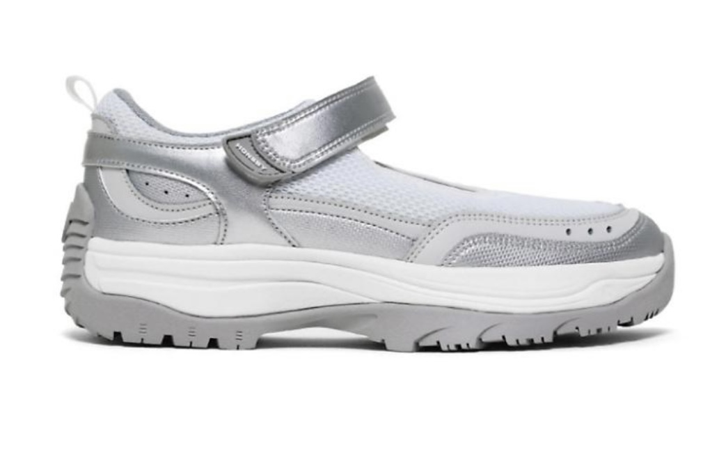 혼스비는 최근 가장 핫한 신발 브랜드로 꼽힌다. 디자 이너 이요한이 호주로 워킹홀리데이를 떠나, 거기에 서 느꼈던 감정을 담아 만드는 제품이 혼스비의 신발 이다. 혼스비의 달링 하버는 실버 색상의 룩을 완성하 기에 좋은 아이템이다. 발등을 모두 덮지 않고 노출시 키면서 통기성을 높였고, 최소한의 밴드로 발을 고정 시킬 수 있는 메리제인 형식의 신발이다. 벨크로를 사 용해 신고 벗기에도 편리하다. 본 제품의 권장 소비자 가는 178,000원이다.