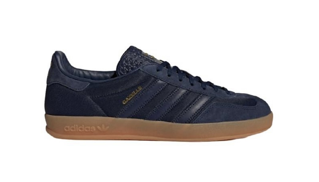아디다스 가젤 인도어는 1979년 처음 출시된 트레이 닝화를 현대적으로 재해석한 스니커즈다. 튼튼한 내 구성을 가진 천연 가죽 소재 어퍼를 적용했으며, 볼록 한 엠보싱 디테일이 돋보이는 설포 디자인을 채택했 다. 옆면에는 톱니 형태의 아디다스의 상징인 3 스트 라이프가 적용돼 있으며, 가젤 로고도 찾아볼 수 있 다. 컬리지에이트 네이비 색상은 어두운 곳과 밝은 곳 에서 띠는 색상이 전혀 다른 점이 매력적이다. 아디다 스 공식몰 판매가는 189,000원이다.