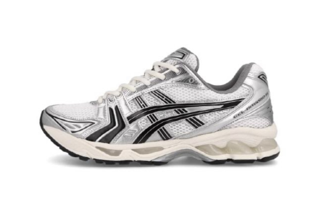 아식스의 젤 카야노 14'는 클래식 운동화로 현대의 많은 이들이 신는 제품이다. 클래식하고 시대를 초월 한 실루엣이 호평을 받는데, 밑창의 힐 디자인과 큰 메시 디테일, 은색 패널 등이 밀레니엄 시대를 연상시 킨다고 평가된다. 선명한 색상의 메시 바탕에 메탈릭 한 실버 오버레이가 특징이며, 전체적으로 디보싱된 디테일이 눈에 띄는 제품이다. 화이트 미드나잇 색상 의 정상 판매가는 169,000원이다.