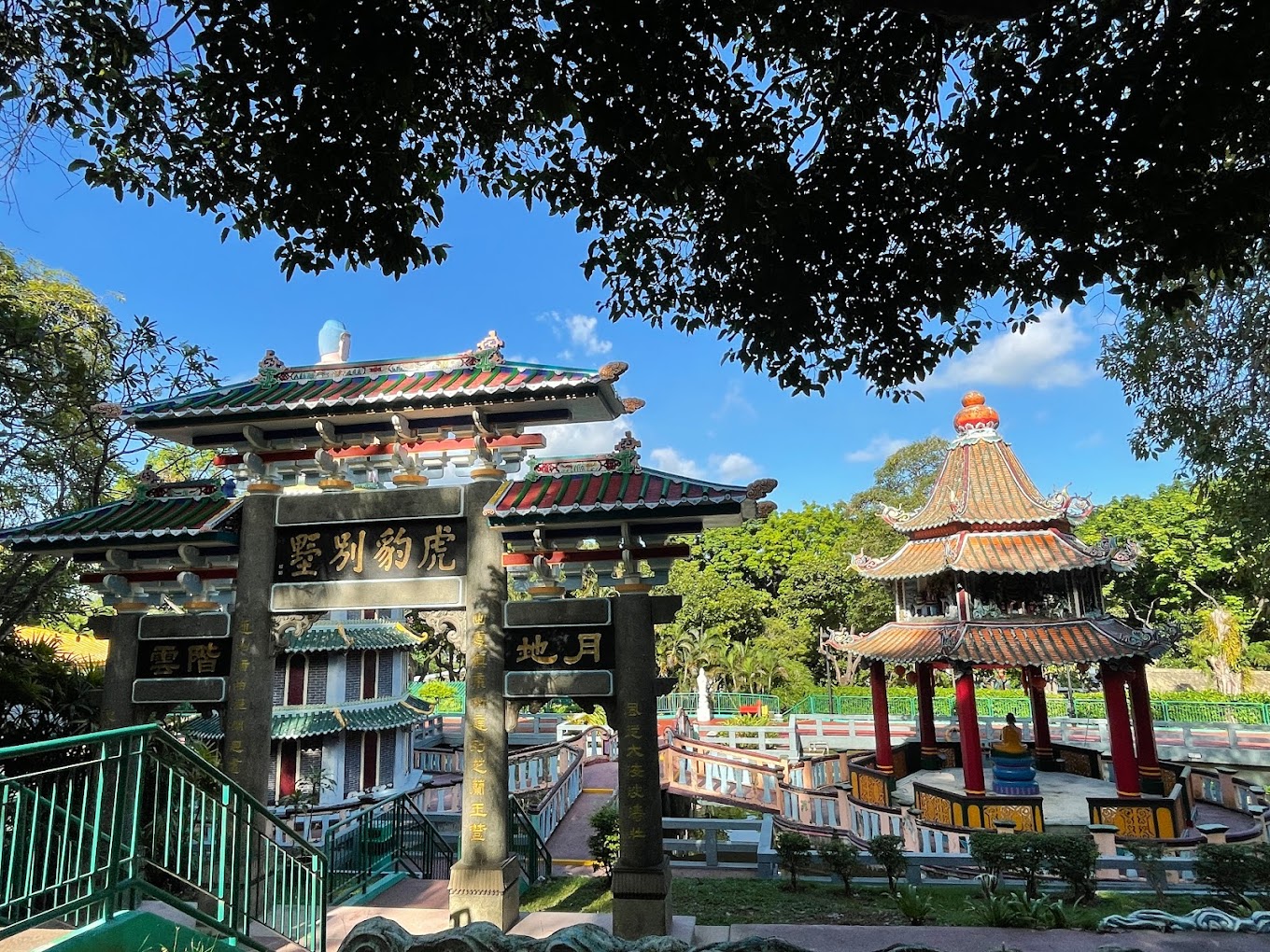 또한 호랑이 밤 정원으로 알려진 호 파 빌라는 영웅과 중국 신화의 전설을 중심으로 만들어진 테마 파크입니다. 이 공원 은 아우 형제 가 약용 으로 만든 호랑이 발암제 로 얻은 재산 으로 지어졌으며,생생 한 합판 과 콘크리트 인형 들 의 컬렉션 을 갖추고 있다.