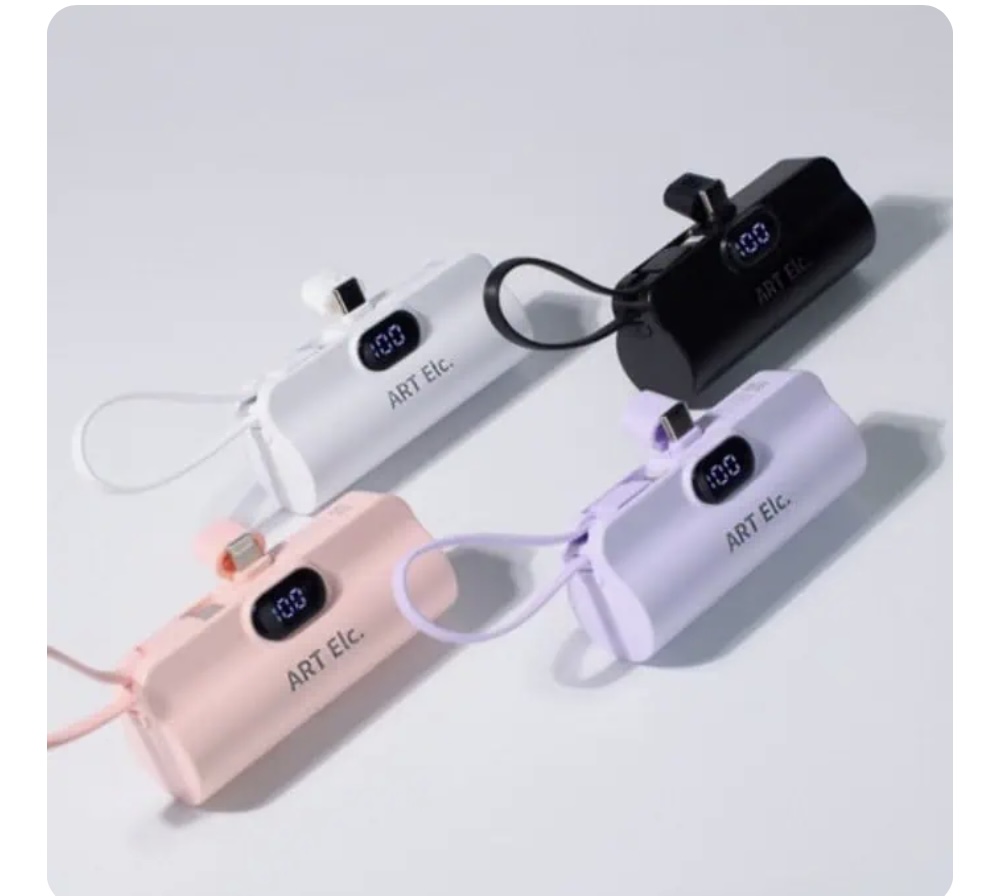 - 아트일렉 미니 도킹형 보조배터리 화이트/ 퍼플/ 핑크/ 블랙 등 다양한 컬러로 선택할 수 있으며 1만 원대의 저렴한 가격대로 가성비도 좋습니다.