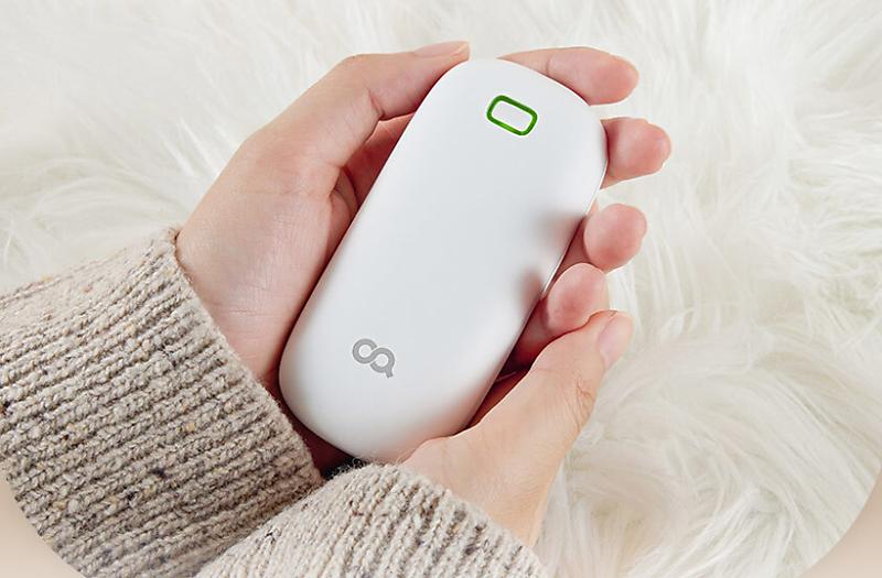 Ah 용량의 배터리를 탑재한 미니 사이즈의 스마트 손 난로다. 본 제품의 무게는 114g으로, 가벼운 무게에 더해 손에 딱 맞는 콤팩트한 사이즈로 휴대가 간편하 다. 제품의 4면은 부드럽게 곡선으로 마감돼 안정적 인 그립감을 제공한다. 다양한 형태로 사용할 수 있도 록 제품 상단에는 튼튼하게 고정돼 있는 스트랩을 적 용했다. 본 제품의 공식몰 판매가는 19,800원이다.