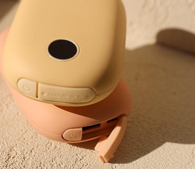 귀여운 디자인의 손난로를 찾는다면 조엘리 손난로' 가 어느 정도 해답이 될 수 있을 것이다. 듀얼 PI 발열 시트를 적용해 열에너지를 효율적으로 전달하는 제품 이다. 한 손에 들어오는 미니 사이즈로, 측면에는 고 리줄을 걸 수 있도록 되어있어 커스터마이징도 유용 하다. 본 제품의 배터리 용량은 10,000mAh로, 보조 배터리로 활용하기에도 충분한 용량을 가지고 있다.