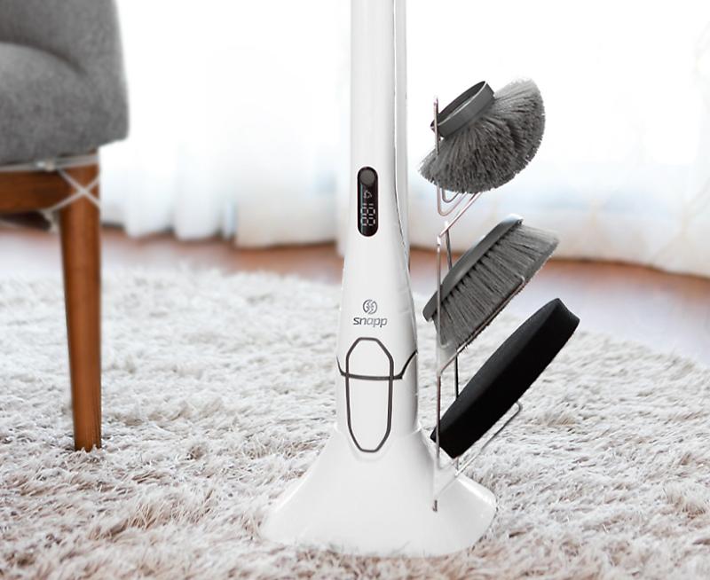욕실의여왕 바이즈 무선 청소기는 분당 320회의 회 전력으로 작동하는 무선 욕실 청소기다. 스크럽 브러 시, 광택 브러시, 평면 브러시, 틈새 브러시의 네 종류 의 브러시 헤드를 본품과 함께 제공한다. 봉의 길이는