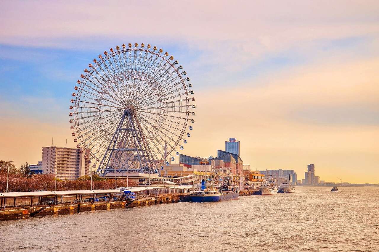 덴포잔 관람차는 동쪽은 이코마산,서쪽은 아카시 해협 진주대교,남쪽은 간사이국제공항,북쪽은 롯코산 등 오사카만 및 주변 지역의 전경을 감상할 수 있는 재미있는 방법입니다. 각 명소를 설명하는 일본어와 영어로 된 해설을 듣게 될 것입니다.