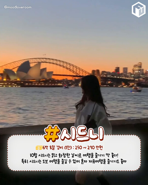 시드니는 오페라하우스나 하버브릿지같은 대표적 관광명소는 물론 웅장한 자연을 만나볼 수 있는 블루마운틴 국립공원과 포트스테판, 헌터밸리등 근교 여행지까지 있어 도심과 자연 2마리 토끼를 다 잡을 수 있는 해외여행지로 추천드립니다.