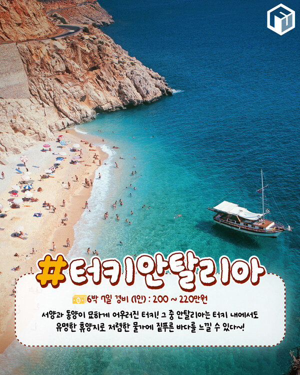 튀르키예는 9월부터 11월까지가 1년 중 여행을 즐기기 가장 좋은 날씨입니다. 튀르케예 중 안탈리아는 지중해 최대의 휴양지로 휴양부터 고대 문화유산이 가득해 관광까지 즐기기 좋은 여행지입니다.