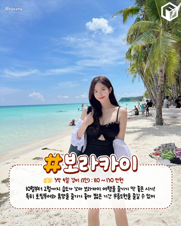 세계적인 휴양지인 필리핀 보라카이입니다. 보라카이는 10월부터 2월까지 건기 시즌으로 습도가 낮아 여행을 즐기기 좋은데요 보라카이의 대표 명소인 '화이트 비치'는 세계적으로 손꼽히는 아름다운 비치으로 꼭 방문해 보셔야합니다.