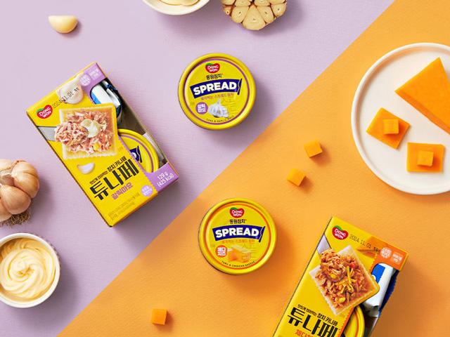 동원F&B는 동원참치 스프레드 2종을 출시했다. 이번 에 선보인 동원참치 스프레드는 참치 살코기에 감자, 당근, 스위트콘과 특제 마요네즈 소스를 넣은 제품이 다. 꾸덕하고 진한 풍미의 체더치즈와 마늘향의 갈릭 마요 등 2종으로 구성됐다. 바로 먹거나 빵이나 과자 에 발라 식사 대용 혹은 안주로 간편하게 즐길 수 있 다. 100g당 단백질 함량은 9g에 달해 아이들 영양 간 식으로도 좋다. 가격은 대형마트 기준 4캔들이 팩으 로 7,980원이다.
